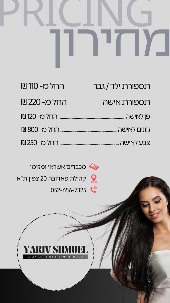 לפני שאתם בוחרים, כדאי לדעת בדיוק מה מחכה לכם אצלנו! אצל יריב שמואל אנחנו מציעים מגוון שירותים מקצועיים שמותאמים באופן אישי לכל לקוח. בין אם אתם מחפשים מראה אלגנטי, עיצוב אופנתי שמתאים לטרנדים האחרונים, או שדרוג קטן שיהפוך את היום שלכם למיוחד – אנחנו כאן עבורכם.